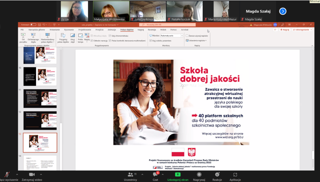 W ramach projektu odbywają się zajęcia wdrażające szkoły polonijne do pracy na platformie edukacyjnej moodle.