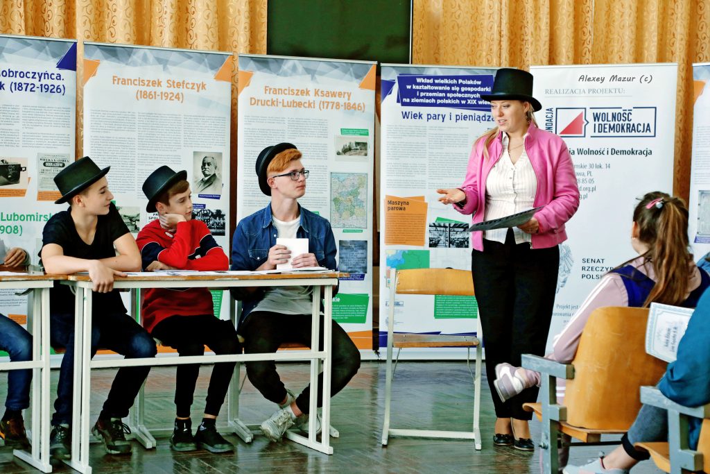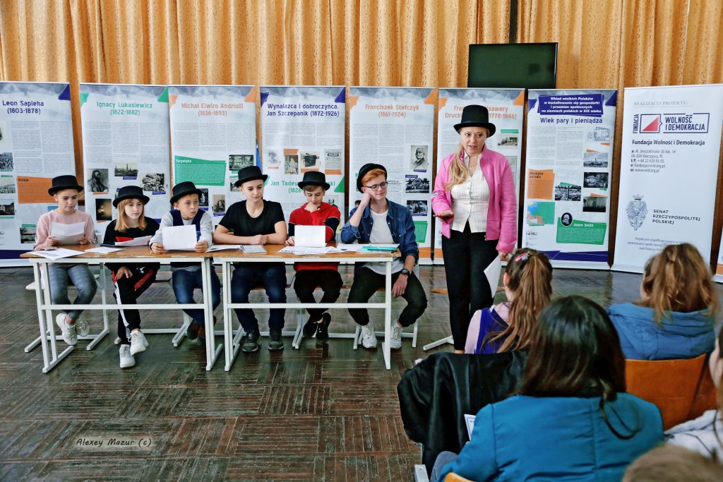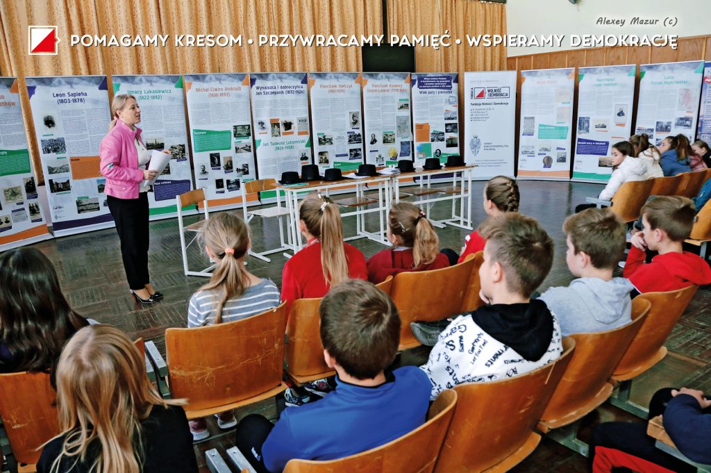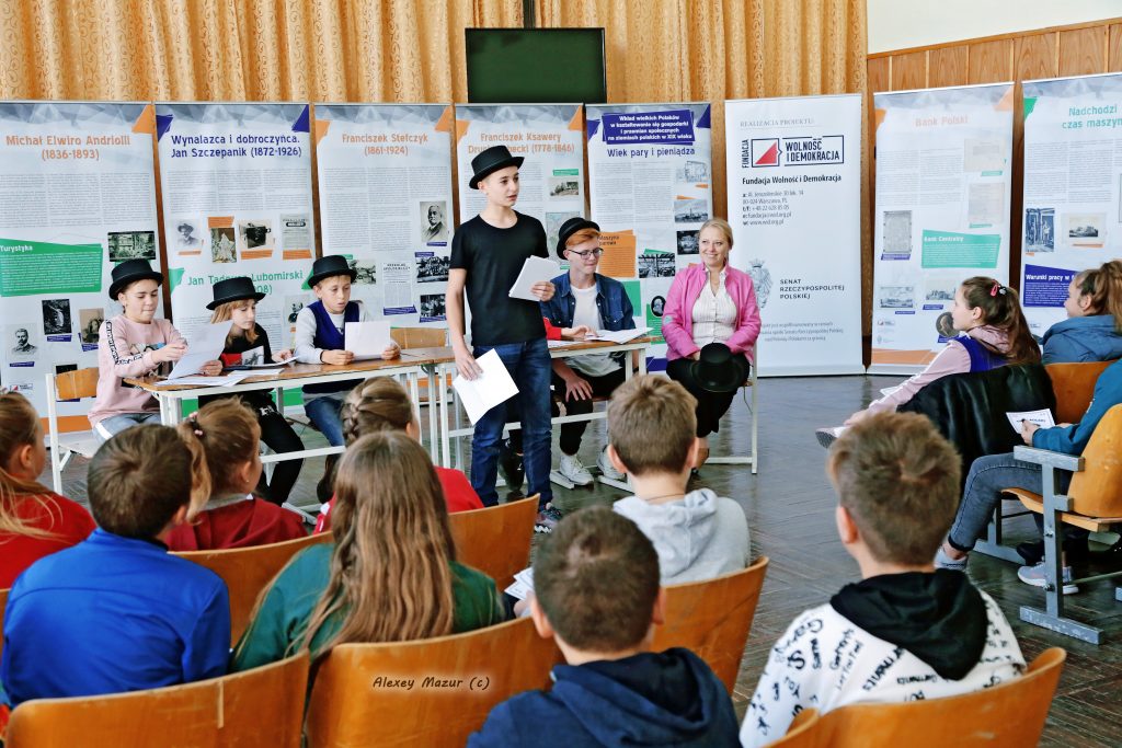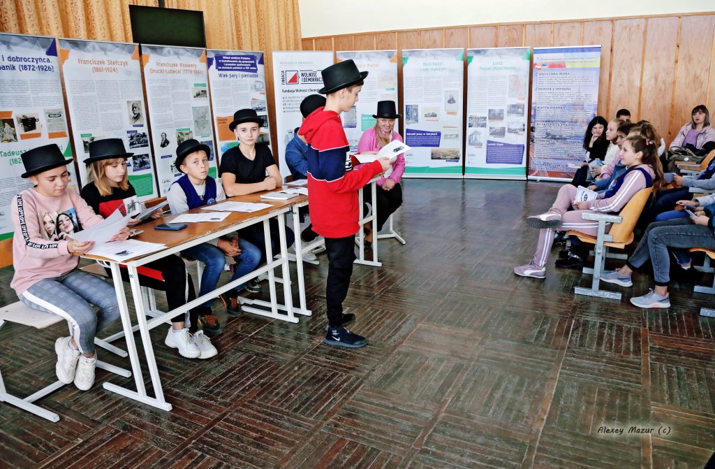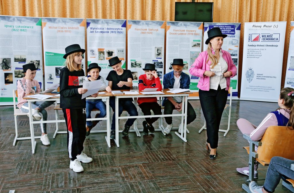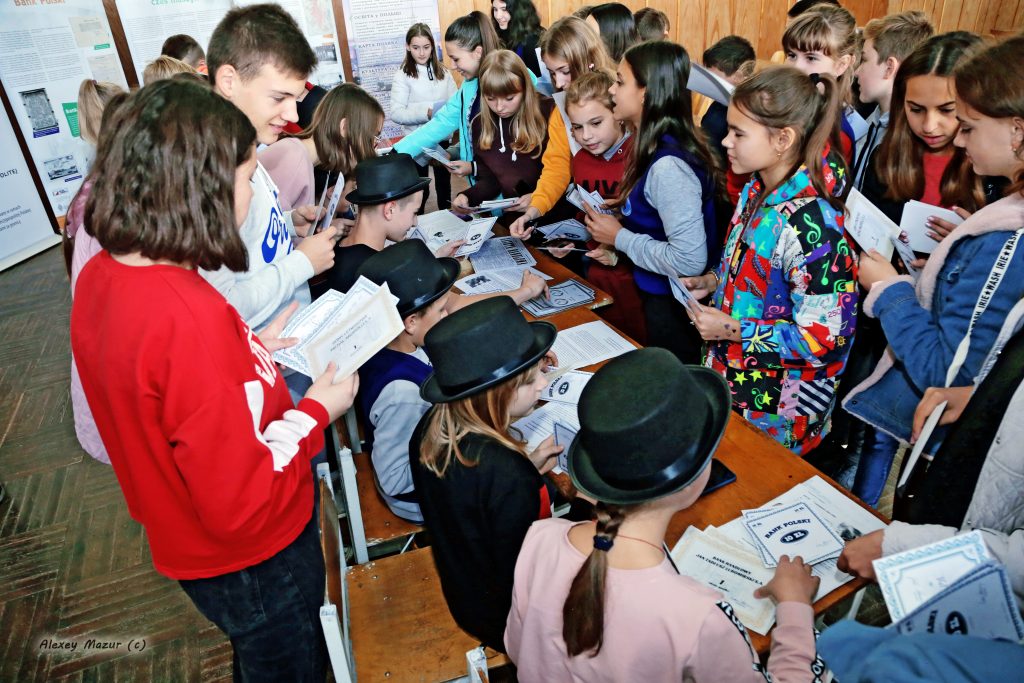 W środę, 16 października 2019 r. kontynuowaliśmy realizację naszego projektu : “Wielcy Polacy dla Polski i Świata. Wystawa i ekonomiczna gra edukacyjna dla dzieci i młodzieży na Ukrainie.” w Kuryłowcach Murowanych obwodu winnickiego na Ukrainie. Z wystawą zapoznali się dzieci i młodzież z Murowano-Kuryłoweckiego rejonowego związku Polaków i szkoły №3. Dzieci z zainteresowaniem poznawali biografie wybitnych Polaków pochodzenia kresowego, a gra ekonomiczna stała się dla nich niesamowitym przeżyciem. Projekt ma na celu promocję Polski, polskiego dziedzictwa kulturowego i historycznego oraz wkład Kresów Wschodnich w kształtowanie się gospodarki na ziemiach polskich w XIX wieku, przedstawienie sylwetek wybitnych Polaków działaczy politycznych, społecznych, ekonomistów, przemysłowców i wynalazców i ich osiągnięć. Wśród zaprezentowanych postaci są Franciszek Ksawery Drucki-Lubecki, Leon Sapieha, Jan Tadeusz Lubomirski, Ignacy Łukasiewicz, Jan Szczepanik, Michał Elwiro Andriolli oraz Franciszek Stefczyk.