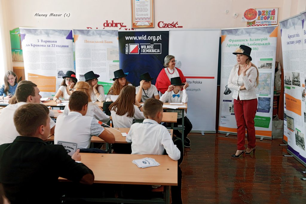 Całość wydarzenia była prowadzona w języku polskim. Obecni uczniowie – 30 osób – uczą się języka polskiego od kilku lat. Sama wystawa i gra była prowadzona w klasie polskiej, wyposażonej w różne pomoce dydaktyczne. Dzięki pracy nauczycielki jezyka polskiego Pani Iryny Tabaczuk wszystkie dzieci rozumiały zasady gry i mówiły po polsku. W wydarzeniu uczesniczyła przedstawicielka Konsulatu Generalnego RP w Winnicy – Pani Anna Szłapak. Wystawę i grę przeprowadziła Pani Maria Kozyrska-Mazur.