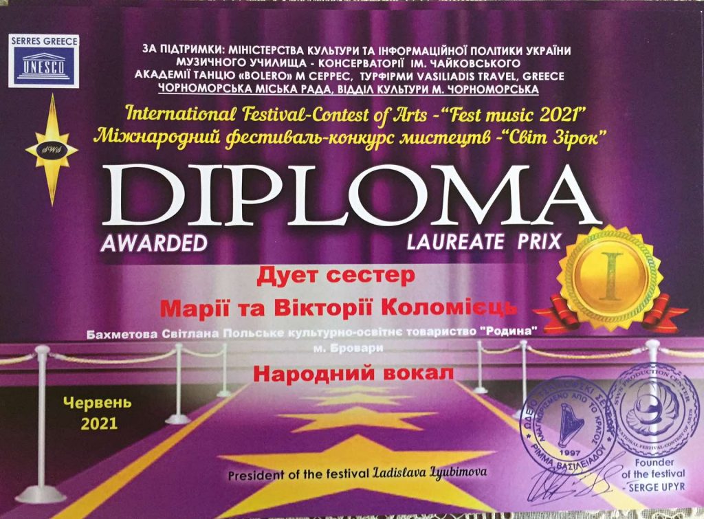 29-30 czerwca wokalno-taneczny zespół “Wszystko w porządku”, który działa przy Polskim Kulturalno-Oświatowym Stowarzyszeniu “Rodzina” (Browary) brał udział w Międzynarodowym festiwalu-konkursie artystycznym ” Świat gwiazd ”  w Odessie.