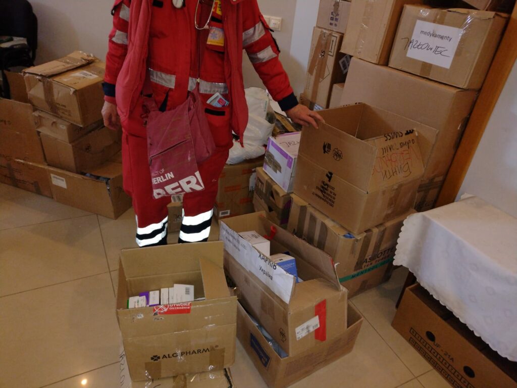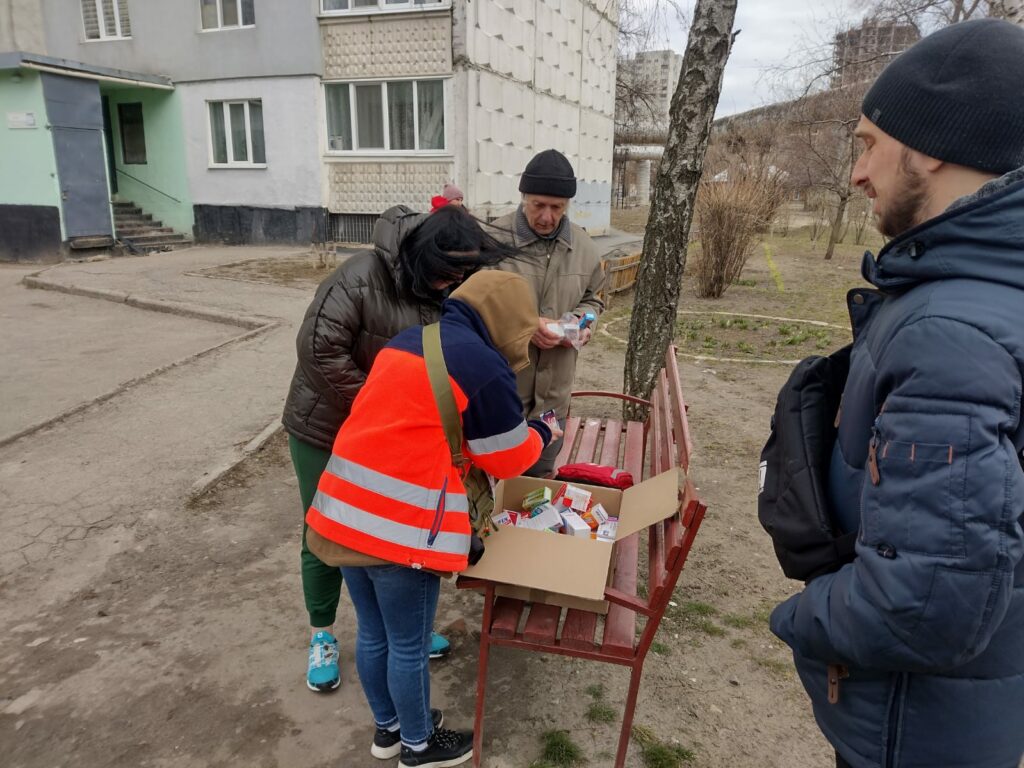 2) Zakupiono niezbędne leki dla osób przewlekle chorych starszych ( leki dla cukrzyków, paski do gleukometrów, leki przeciwbólowe, rozkurczowe,) leki były rozwożone przez wolontariuszy do domów osób znajdujących się w potrzebie w Charkowie, wydawane osobom zgłaszającym się do punktu pomocowego. Około 130 osób skorzystało z pomocy.