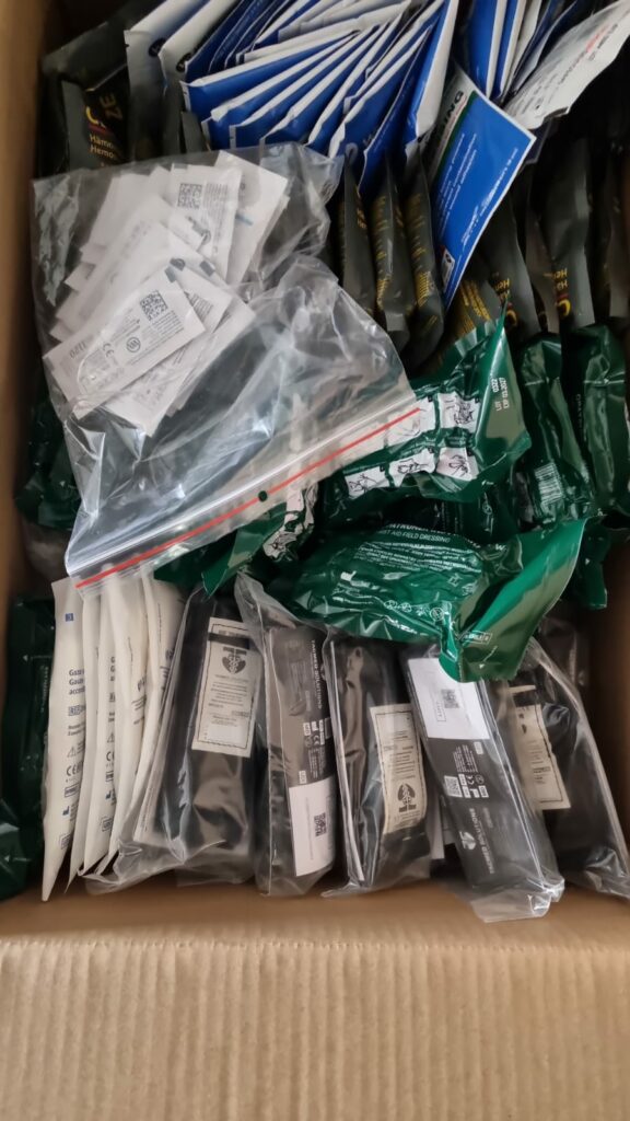 1) Zakupiono i przekazano 20 apteczek osobistych – zestawów ratujących życie ze środkami hemostatycznymi, opaskami zaciskowymi, nożyczkami, opatrunkami, życie człowieka jest bezcenne.